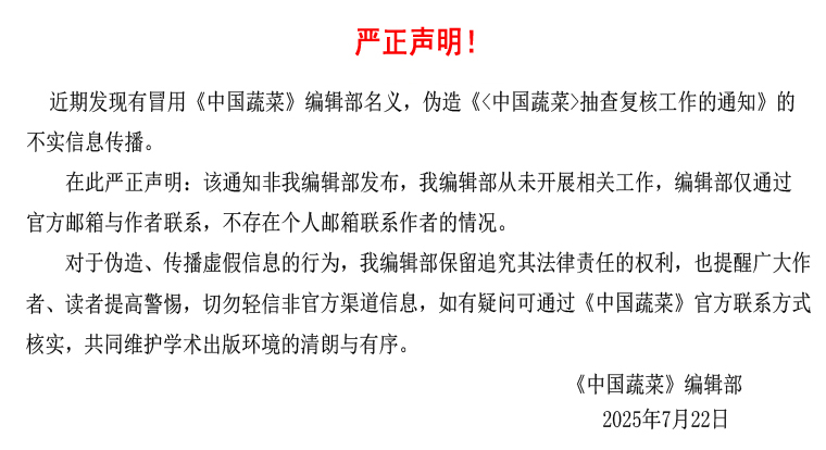 关于伪造《<中国蔬菜>抽查复核工作的通知》的严正声明